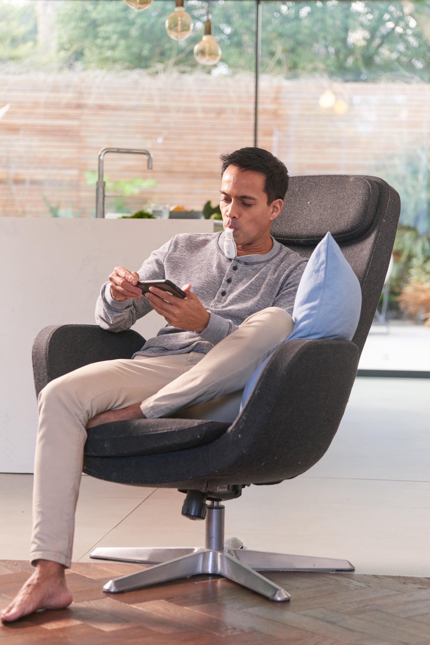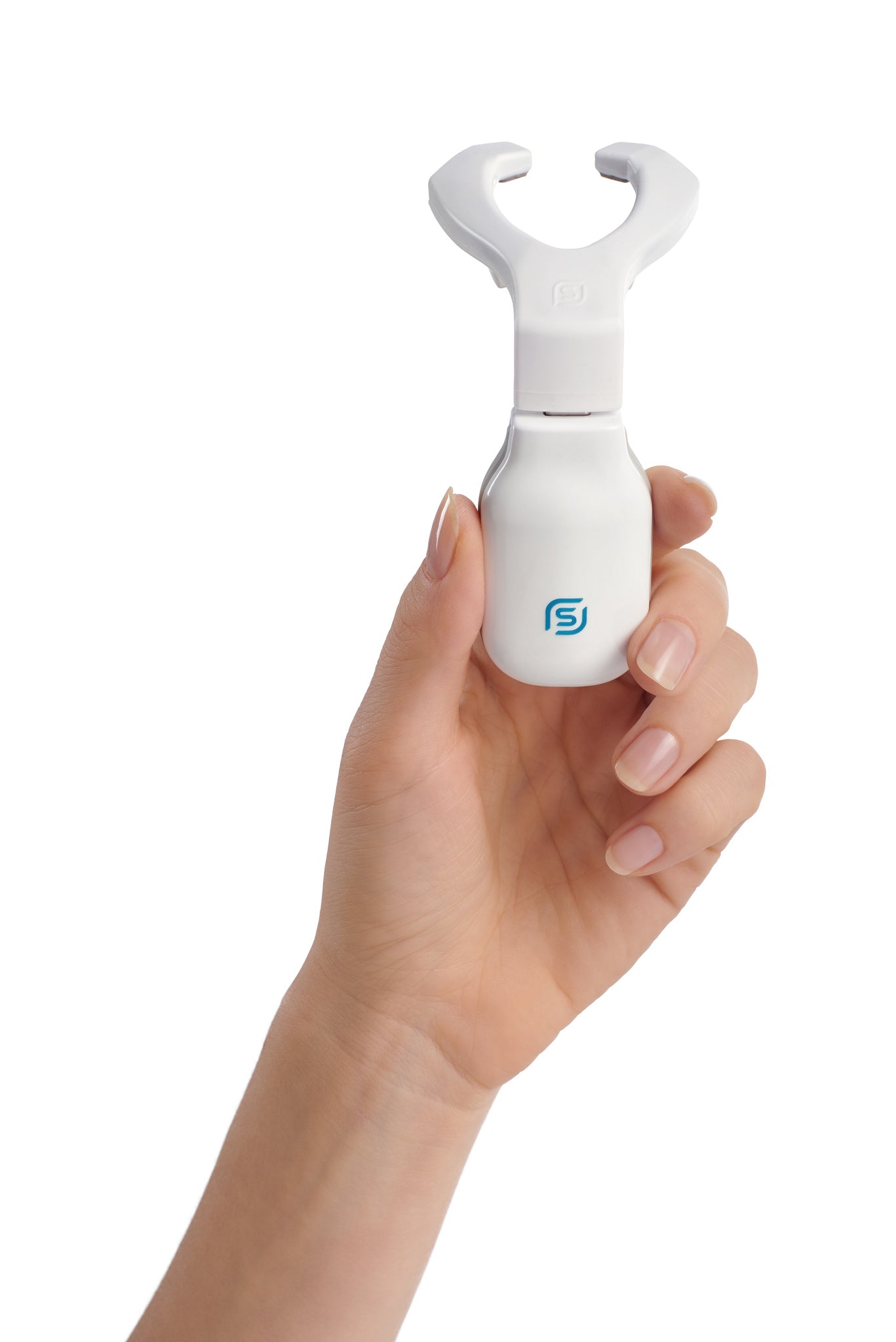 Connect the two pieces of the device and position the mouthpiece onto your tongue.